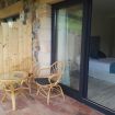 Hay un porche para disfrutar del exterior y una mesa para hacer las comidas cuando el tiempo lo permite.
